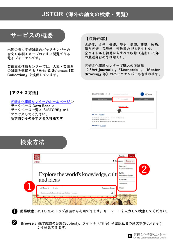 検索の豆知識・情報の探し方 > 情報の探し方 > データベースの使い方「JSTOR」